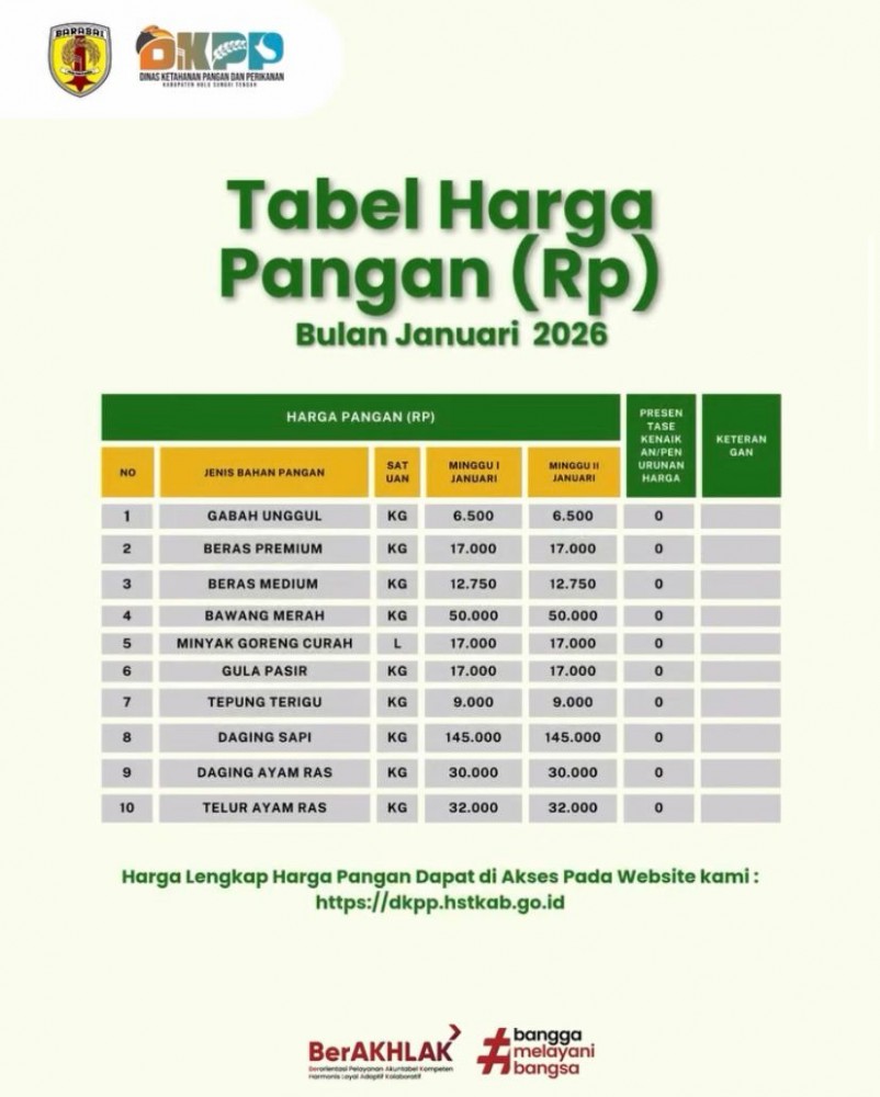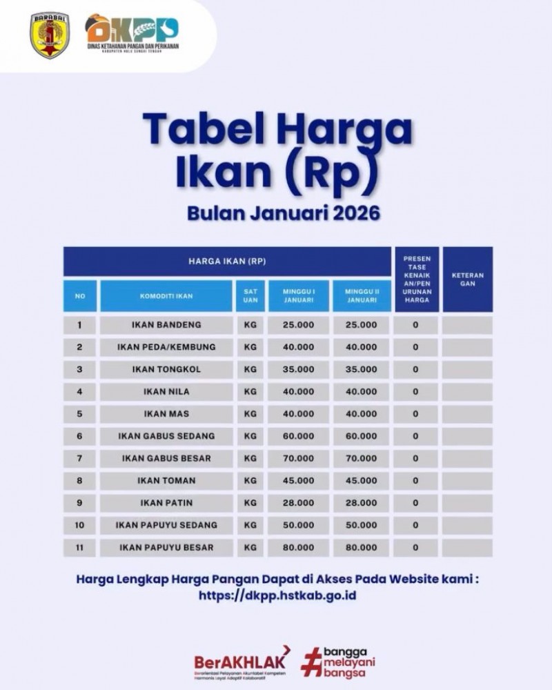 Agar Kalian dapat terus mengikuti perkembangan harga bahan Pangan & Ikan di Hulu Sungai Tengah untuk kebutuhan sehari-hari.